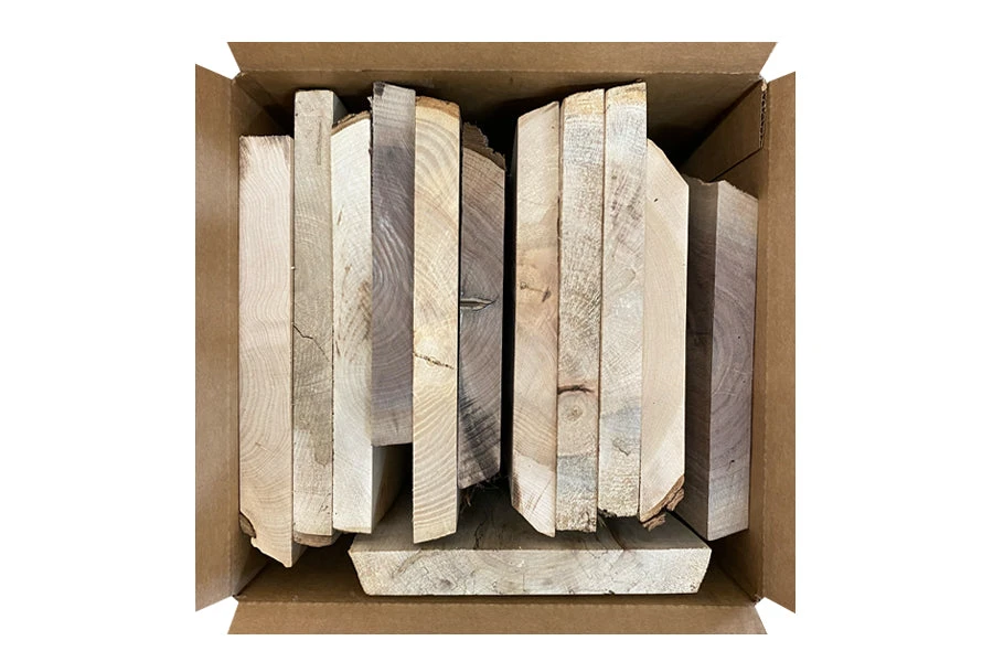 Indulge in the mystery of our hand-picked variety box of 1” Thick Mixed Live Edge Project Box. You will find a selection of 1″ thick Live Edge pieces from a selection of Black Walnut, Ambrosia Maple, Cherry, and Ash. There will be approximately 17 pounds of material to work with in a 4″ H x 10″ W x 26″ L box.