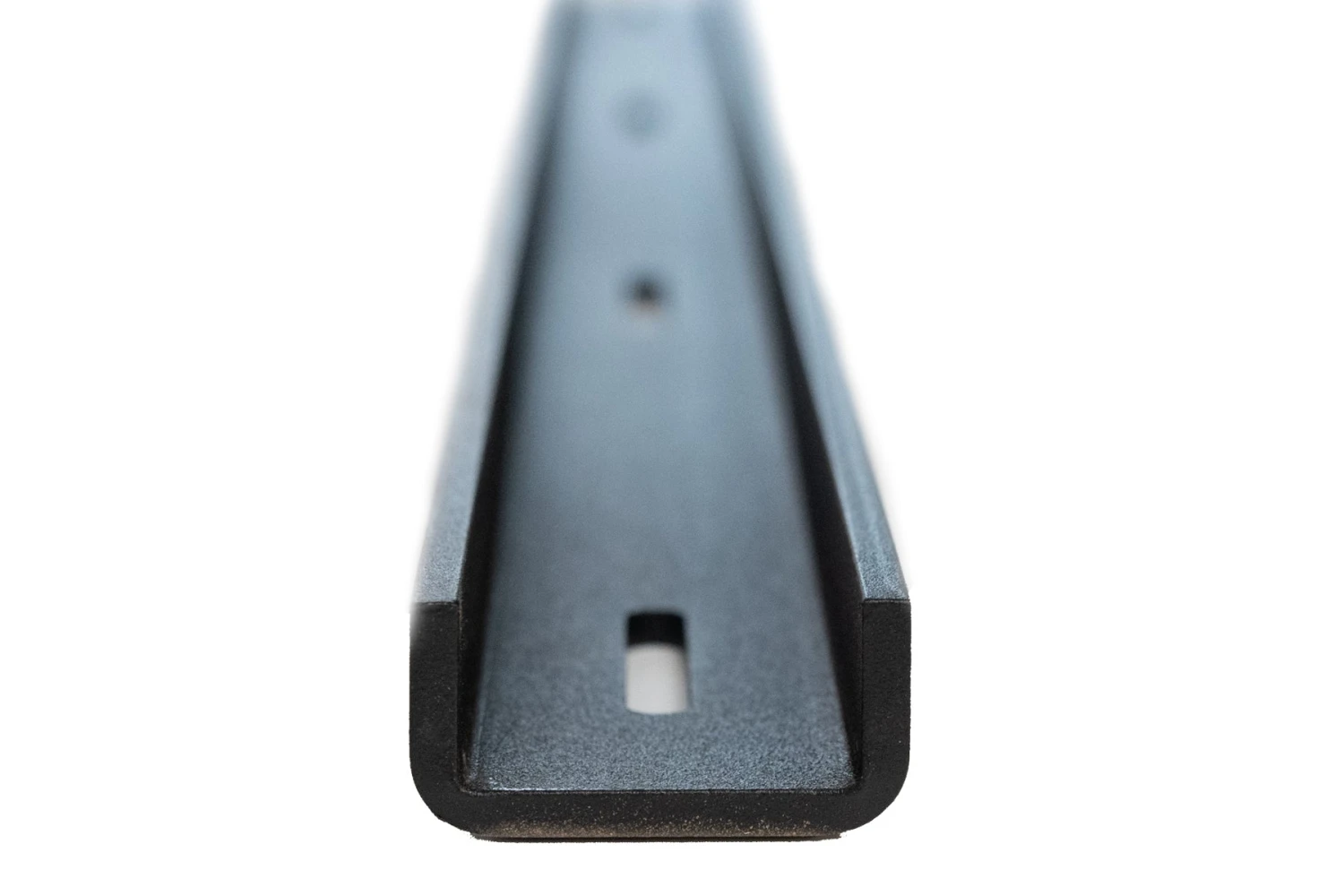 The channel has been powder coated black to give a hard wearing finish.