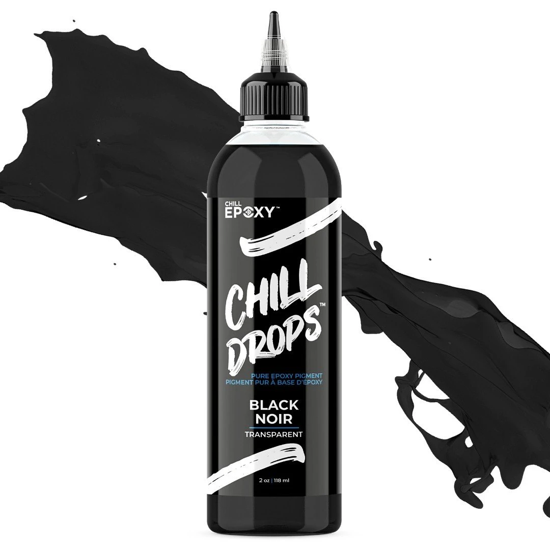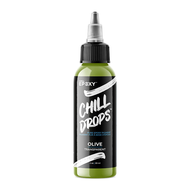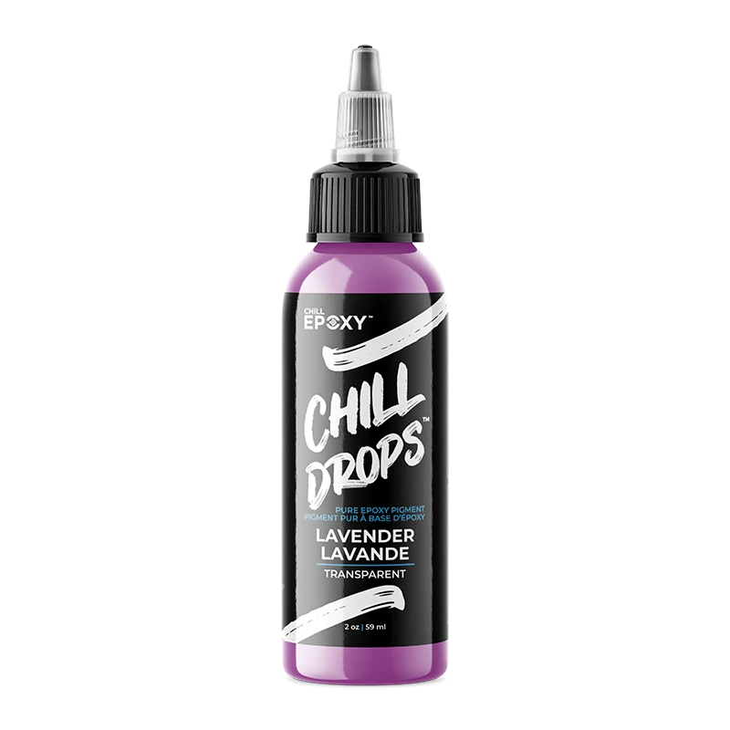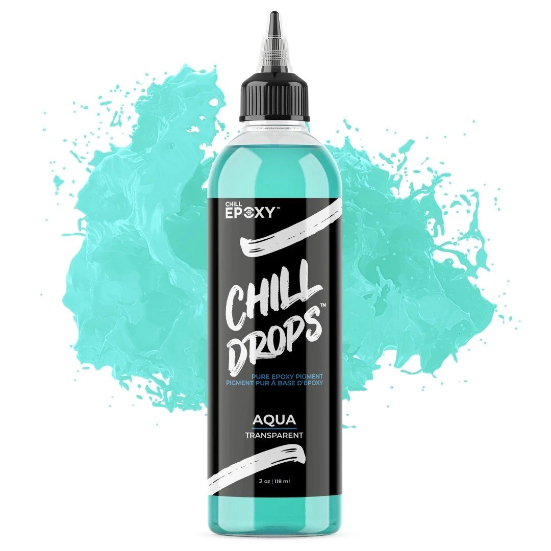 Liquid epoxy resin CHILL DROPS™ has highly concentrated 100% reactive epoxy-based liquid pigments available in OPAQUE or TRANSPARENT options. Completely compatible with the CHILL EPOXY™ line of products or other epoxy lines, they will allow you to achieve pure colors by using gradually between 0.0250% up to 5% in weight/volume in the mixture A/B until you reach the desired color.