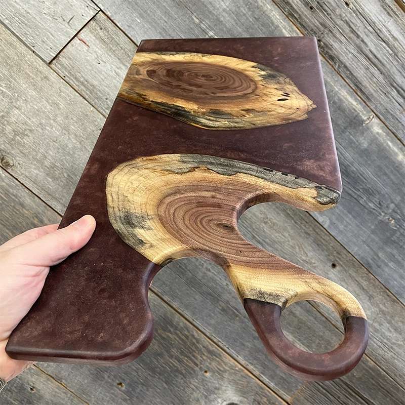 These laser cut acrylic charcuterie board handle templates are perfect for recreating this classic handle design! The clear template allows for the perfect placement so you can include specific details in your board.