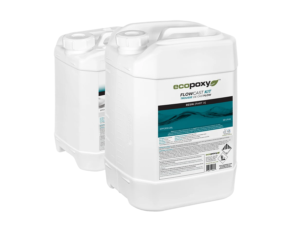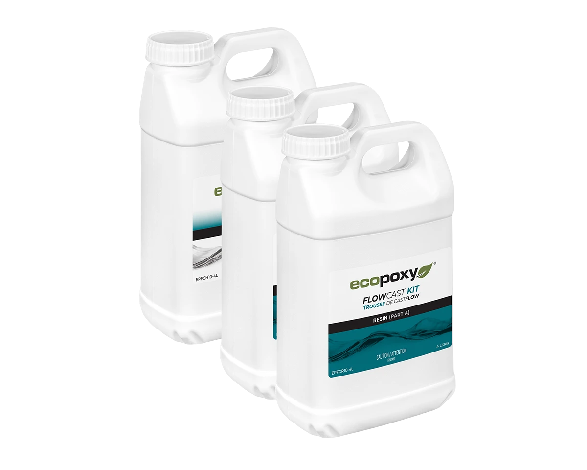 FlowCast is a high performance, commercial grade epoxy that cures to a clear, UV resistant glass-like finish.