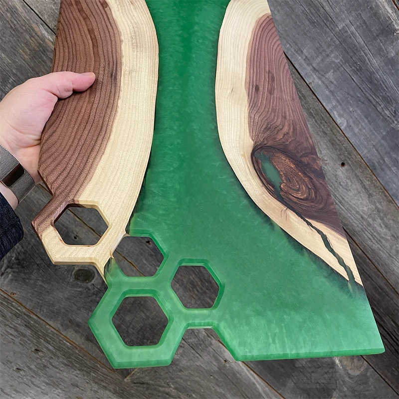 These laser cut acrylic charcuterie board handle templates are perfect for recreating this classic handle design! The clear template allows for the perfect placement so you can include specific details in your board.
