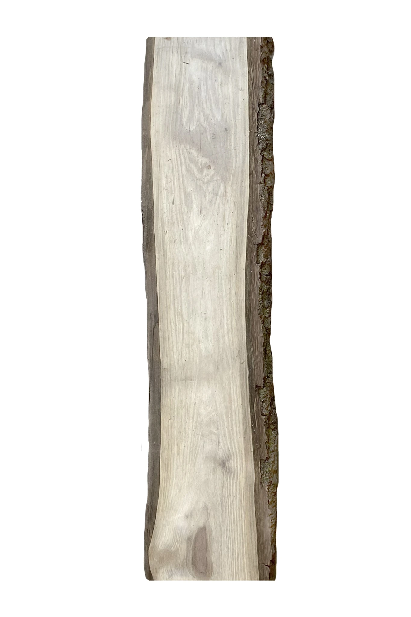 This item is one of a kind! Slight variations are to be expected and admired. Yours may not have the same grain pattern as those pictured – but will still be carefully selected by our staff to ensure you are getting a beautiful live edge piece. These boards have been kiln dried and surfaced to show the grain and colour. We will carefully handpick a 4″ – 9″ wide board in the length of your choice. Thickness is between 3/4″ – 15/16″. Boards will often have only partial bark or no bark at all.