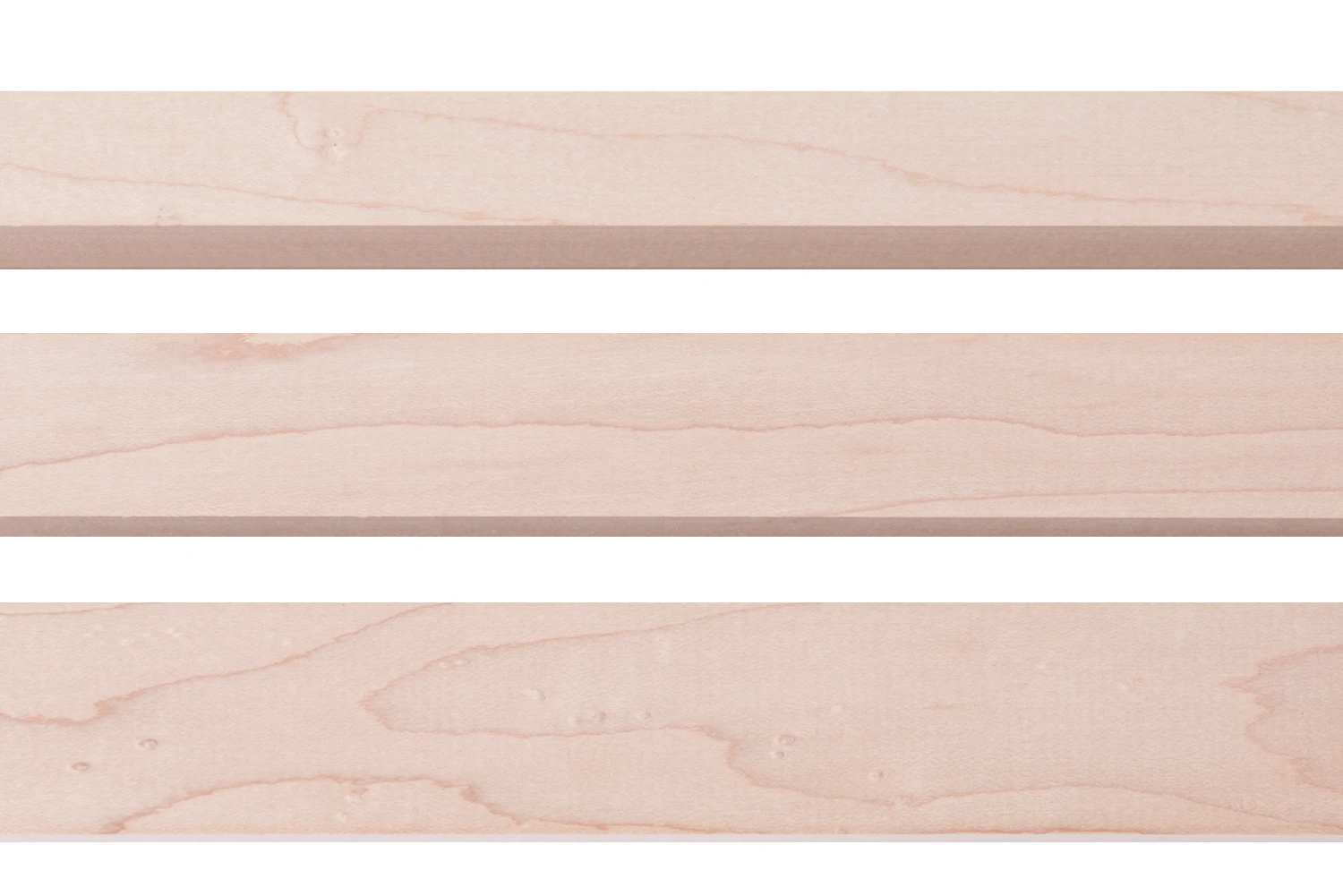 Unlike most other hardwoods, the sapwood of hard maple lumber is most commonly used rather than its heartwood. Sapwood color ranges from nearly white, to an off-white cream color, sometimes with a reddish or golden hue. The heartwood tends to be a darker reddish brown. Fairly easy to work with both hand and machine tools, though slightly more difficult than soft maple due to hard maple’s higher density.