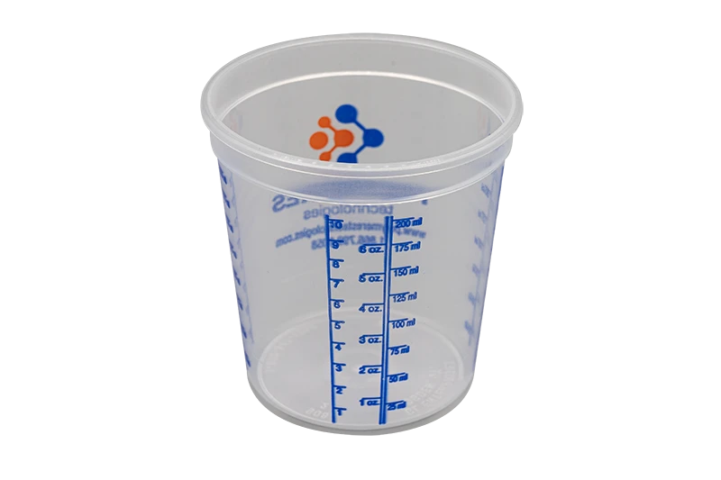 Mixing Ratios: The side of each cup includes markings for ounces and milliliters.