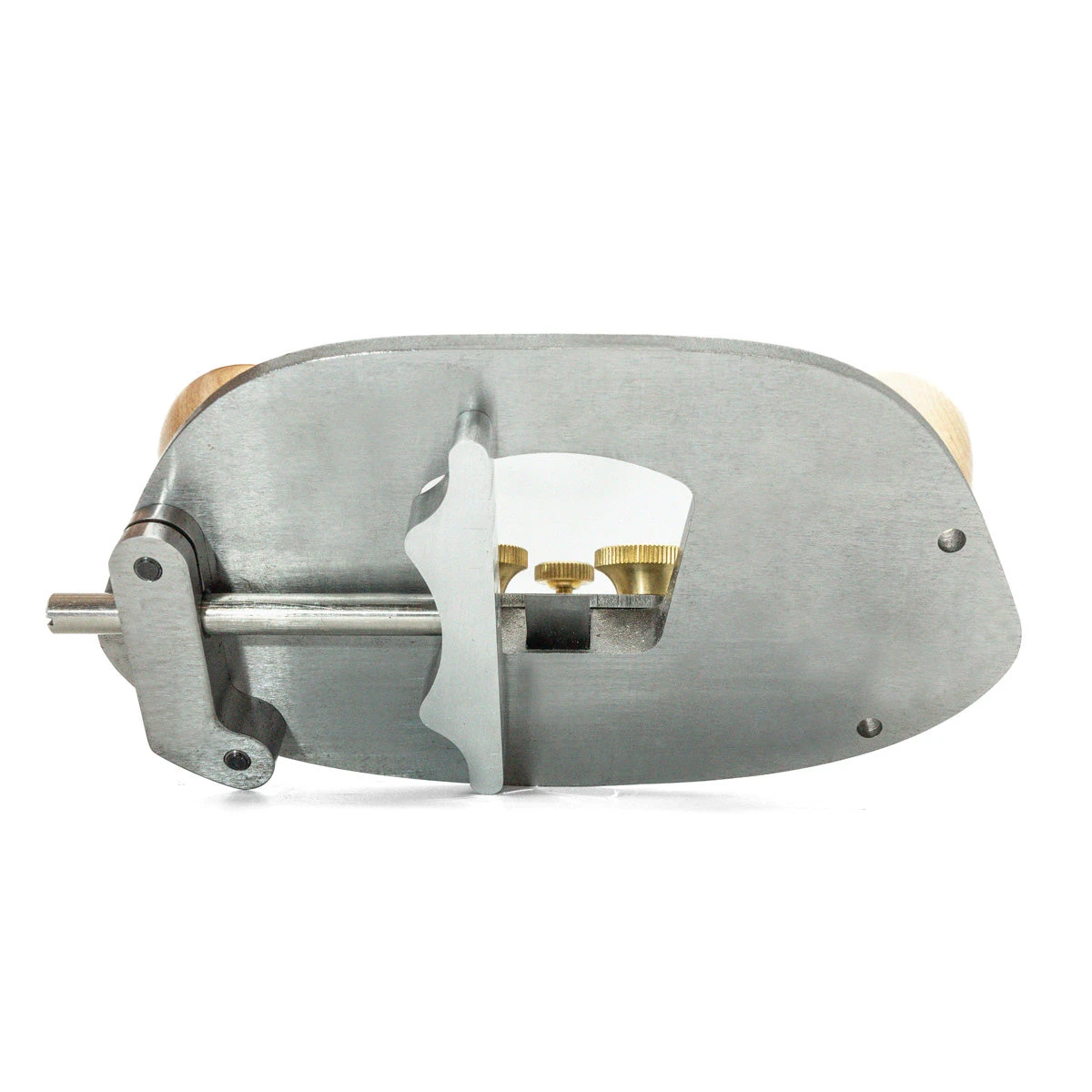 An Uncomplicated Plane – This Large Router Plane is a versatile yet uncomplicated tool. The minimalistic design makes it easy to disassemble for maintenance and reassemble for work. The knurled fixing knobs are very accessible with a very smooth action. The blade’s depth of cut is adjusted by an elegant leadscrew with minimal backlash. A depth-stop collar allows you to return to the same setting without fuss.