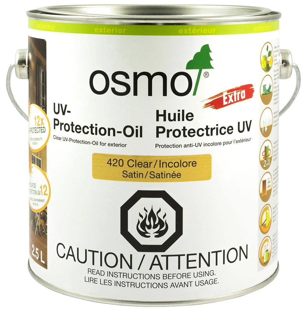 Osmo UV-Protection Oil Extra is a satin-matt, natural oil based and microporous finish, does not crack, flake, peel or blister. It is water and dirt resistant, moisture regulating and reduces wood swelling and shrinkage. The natural oils enhance the natural character and tone of the wood.