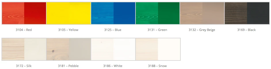 - Wood grain remains visible with transparent tones and wood grain can be hidden with intensive tones