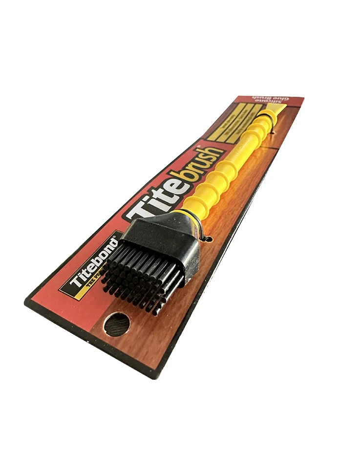 Titebond Titebrush is a durable glue brush with 100% silicone bristles and a plastic handle built to last. It’s ideal for use with most woodworking and polyurethane glues eliminating the need for disposable brushes, fingers and other spreading tools. When finished let glue dry and simply peel or riffle the bristles for easy cleanup. Brush end is ideal for edge and face gluing, as well as general applications. The paddle end is ideal for finer detail work, such as mortise and tenon, dovetail and finger joints, as well as moldings.